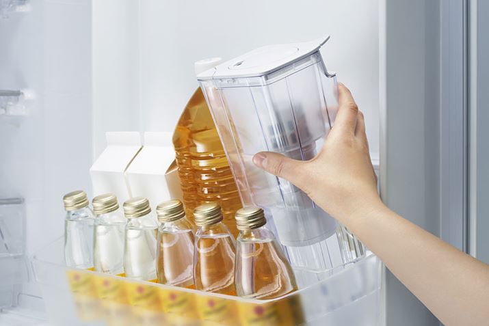 ポット型の浄水器は、容量1〜2L程度の容器にろ過フィルターを内蔵したカートリッジが付いており、水道水を注いで浄水を生成します。水道水のろ過には数分程度の時間がかかるため、すぐに浄水を飲むことはできず、水を注いでからしばらく冷蔵庫などに保管してから飲むのが一般的です。