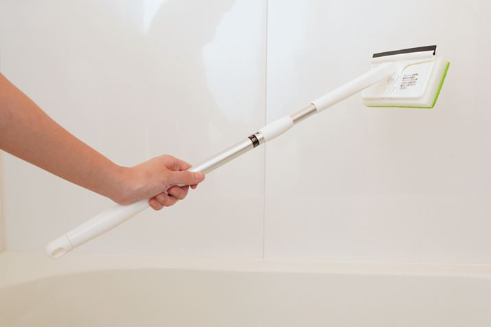 これは、洗剤いらずでしっかり汚れが落とせる頼れるアイテム。持ち手の長さとヘッド部分の角度が調節可能なので、天井もラクにゴシゴシできます。