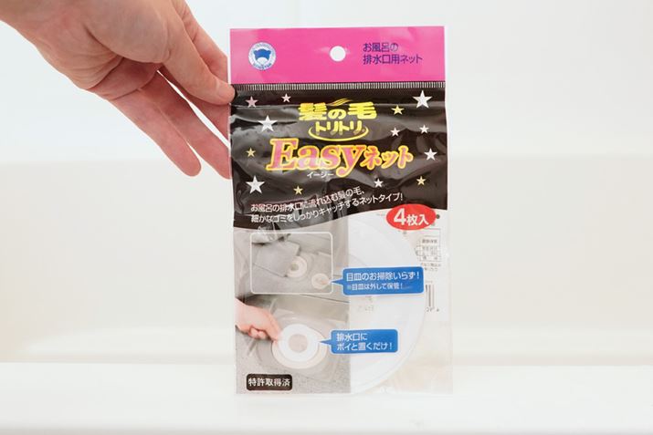 すると、目皿の代わりにEasyネットが髪の毛を受け止めてくれるので、たまったらEasyネットごと捨てて、新しいものと交換すればOKです。ポンッと置くだけ、そして使い捨てなので、排水口と向き合う時間が圧倒的に減ります。ご自宅の排水口の形に合えば、ぜひ使ってみてください。