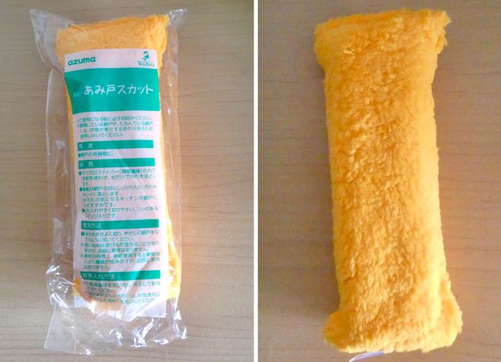 続いては、マイクロファイバーを使ったふわふわなスポンジタイプの商品です。長さが約20cmと大きく、持ちやすいですね。こちらも洗剤いらずで、水を付けて網戸を拭くタイプ。