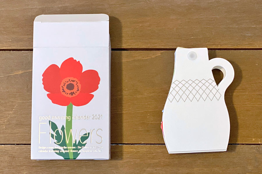 その月のお花をくるっと持ち上げれば、花瓶にお花が飾られたような形の卓上カレンダーになります