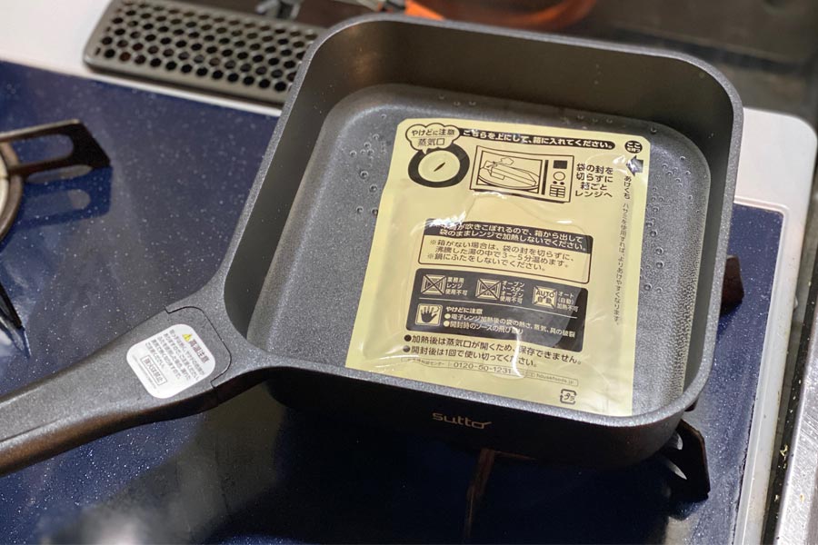 レトルトカレーなどを温める際、これまでは雪平鍋を使っていたのですが、形が合わないため水をたくさん入れる必要がありちょっとわずらわしく思っていました。しかしご覧の通り、「sutto」なら四角いので形がピッタリ! 水も少量で済むのでありがたいです。