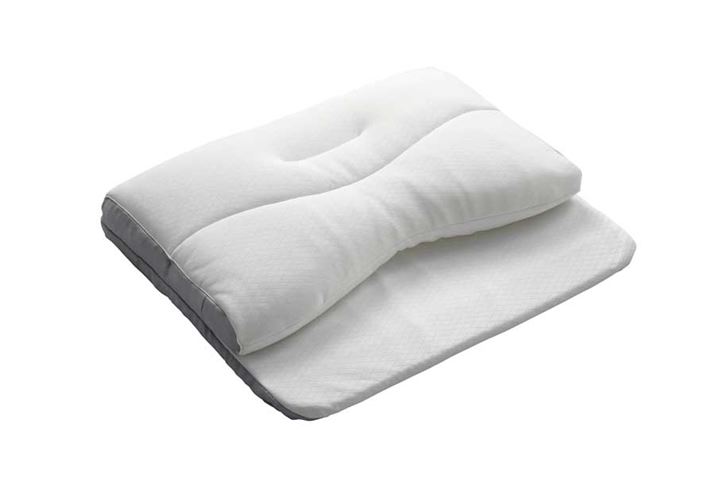 西川との共同開発によって生まれた、寝返りがしやすい枕。中心部に窪みを、両サイドにマチを設けることで、寝返りを打っても同じ頭の高さがキープできる「寝返りカーブ」を採用。また、頭と首に当たる部分が3つに仕切られ、それぞれに異なる詰め物を用いているのも特徴です。