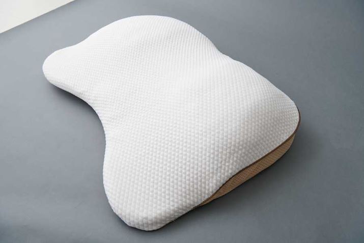 「フィット感のあるリボン型の枕は、首と肩にかかるストレスを軽減してくれます。枕の両サイドは中央部よりも高くなっており、左右に寝返りを打った際に頭をしっかり支えてくれる構造です」