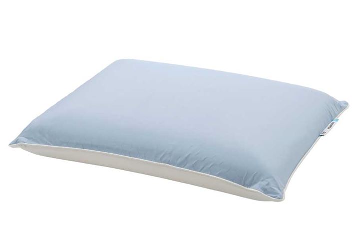 「ソフトな寝心地の枕です。厚みがないぶんやや底付感があるので、ソフトなマットレスと組み合わせるとよいでしょう。詰め物がソフトなので、安定感を好む人には少し不安定に感じられることもあるかも」