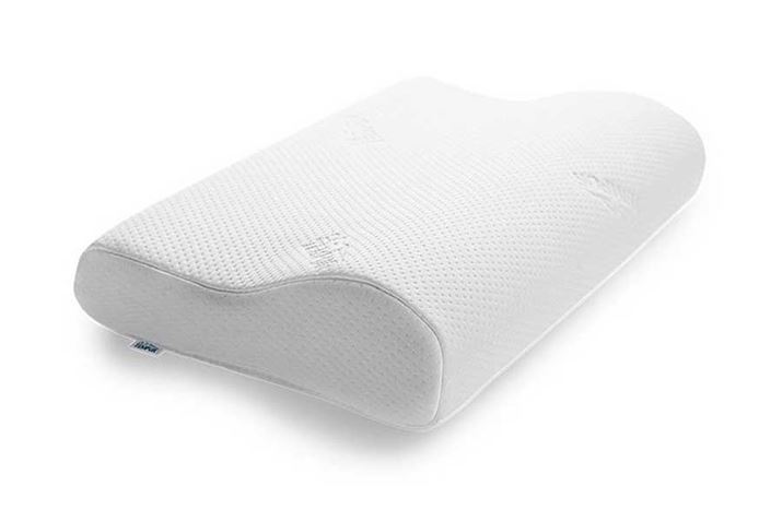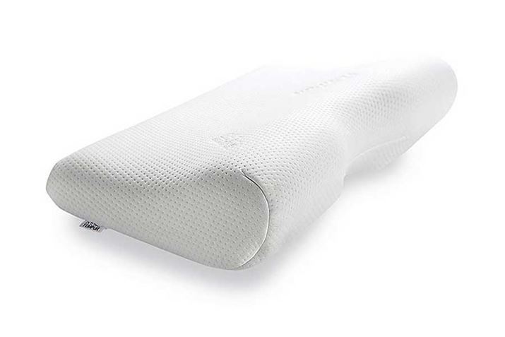 「テンピュール(R)」素材のやわらかさが、体温や体圧、体型に応じて変化。中央の窪みが首や肩口のフィット感を高め、左右の厚みが横向き寝の肩への負担をやわらげます。