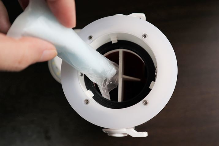【1】まずは本体のフタを開け、2か所に塩を入れます
