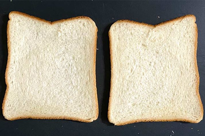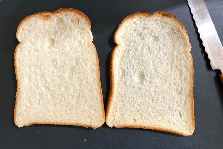 フリーハンドで6枚切り食パンをスライスした結果