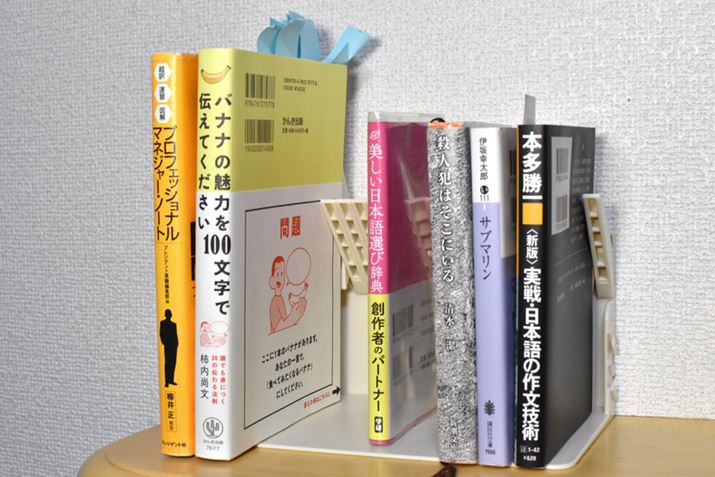 デスクの上にこれをセットして、仕事でよく使う資料本を立てておくと、とにかく便利なんだ。本を抜いた幅だけぽっかり空くので、ここに戻せばいいんだな、というのが視認しやすい。結果、片付けもしやすくなるでしょ