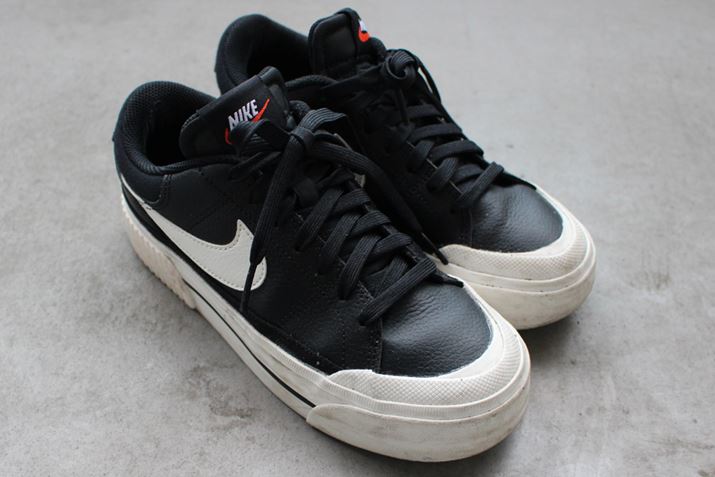 ではさっそく、このスニーカーをキレイにしましょう。約1年前に購入し、あまり汚れが落ちないスティック型のクリーナーでたまに気持ちゴシゴシしてた……くらいの一足です
