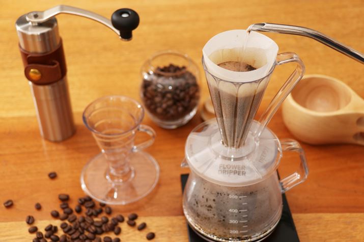 ペーパーフィルターにお湯がかからないようにしましょう。鋭角ドリッパーのほうが直径が小さいので、ちょっと集中力を要します