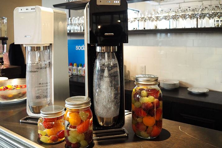 ラウンドテーブルの会場は代官山のカフェ。各テーブルには家庭用炭酸マシン「ソーダストリーム Source Deluxe」が用意されていました