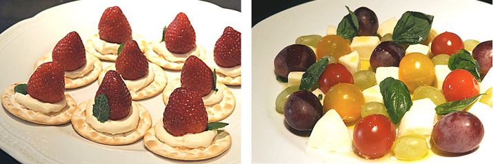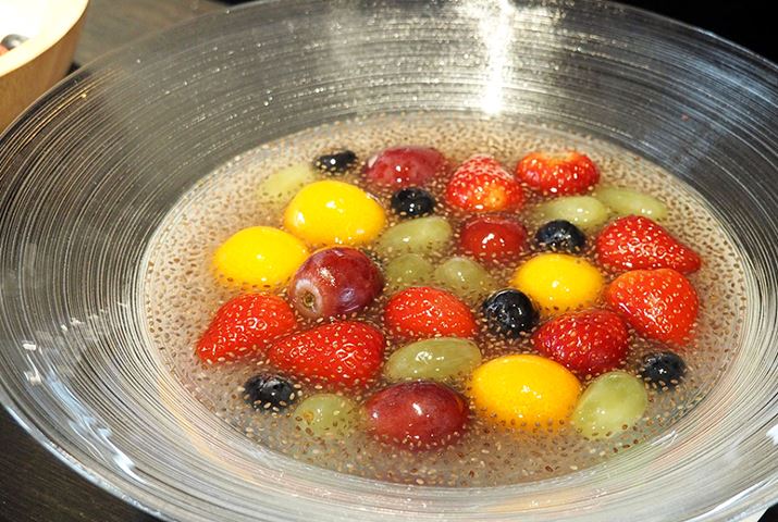 アレンジメニューも用意。チアシードのしゅわフルポンチ、しゅわフル シリアルボウル、はじけるぶどう&ミニトマトのカプレーゼ風サラダ、しゅわしゅわいちごのパーティ・クラッカー。フルーツだけでなく野菜もシュワシュワに!