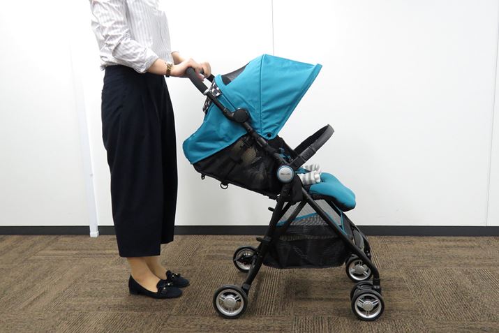 しかし、PATTANの一番の魅力は階段の昇り降りや電車の乗り降りといったシーンでの機動力のよさ。バリアフリーが進みつつある昨今でも街中には階段が多く、混雑する公共交通機関ではベビーカーを折りたたまなければならないシーンが多々あります。現在小学4年生の母でありベビーカーを卒業して何年も経つ筆者ですが、人ごみの中、ベビーカーの折り畳み作業にもたついて迷惑をかけ周囲の冷たい視線に辛い思いをしたことは、今でも思い起こされます。ましてやひとり立ちのできない赤ちゃんを片手で抱えた状態では、いかに無理難題か。経験上よくわかります。