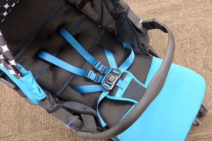 PATTANは持ち運びの際のスタイルにもひと工夫。赤ちゃんの落下を防ぐフロントガードの部分が、持ち運び時にも活躍。丈夫ですが柔軟性のある素材で、キャリーハンドルやショルダーベルトの役割も果たしてくれるのです。ショルダー使用時にタイヤやフレームが身体に当たらないようにするなど、細かい部分にまで配慮が行き届いている点にも感心しました。