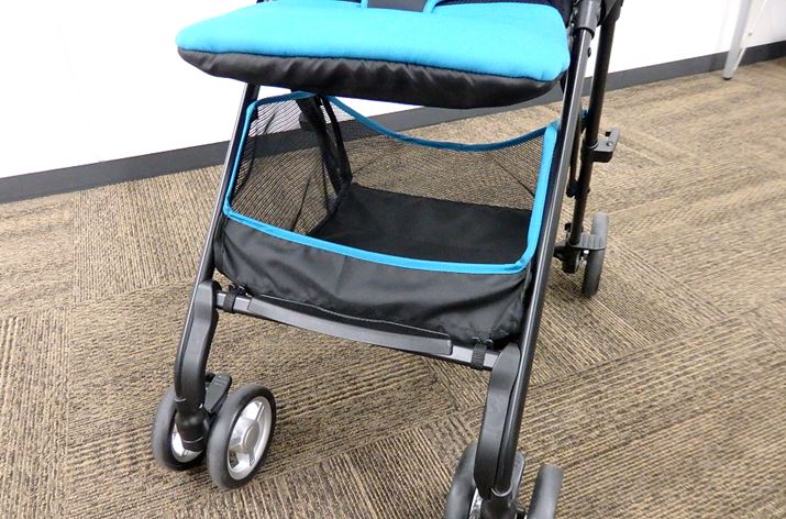 前からも後ろからも出し入れ可能な大容量のカゴ。容量は20L。何かと荷物が多い赤ちゃんとの外出には必須の装備ですよね!