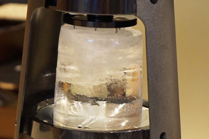 製氷容器は2重構造になっています。2重にするとじわじわと凍らせることができるので、透明な氷になるのだそう。また深さがあるため、塩素やミネラル分などの不純物は下のほうに沈殿。つまり、上のほうは不純物のない透明な氷ができるというのです