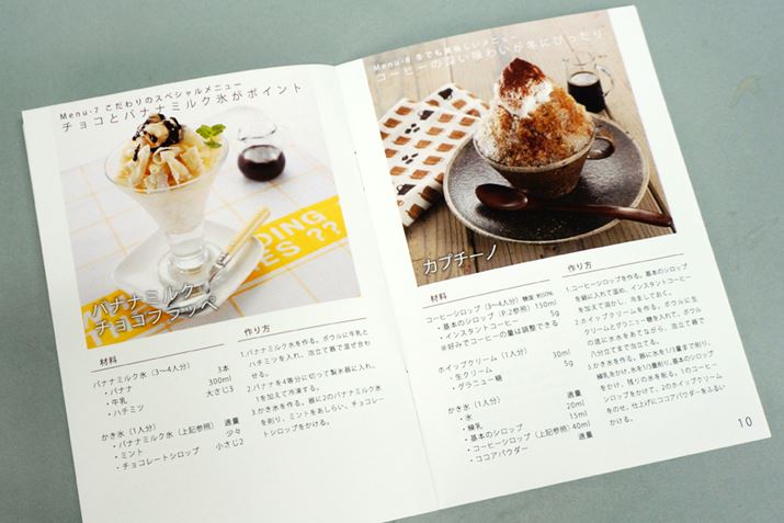 「本格かき氷器」には凝ったメニューが満載のレシピBookが付属しているので、あまり食べたことのないかき氷にもチャレンジしやすいでしょう