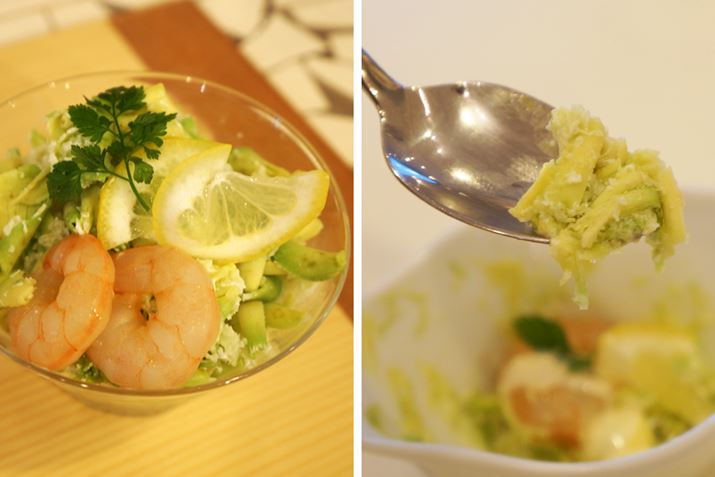 上で紹介したスイーツ系かき氷も美味ですが、食事系のほうが個人的には好き! アボカドとヨーグルト、牛乳、マヨネーズなどを製氷器で凍らせて削ったかき氷です。しっとりとしていて、口の中でスルッと溶け、これは食欲がない時にもどんどん食べられますね