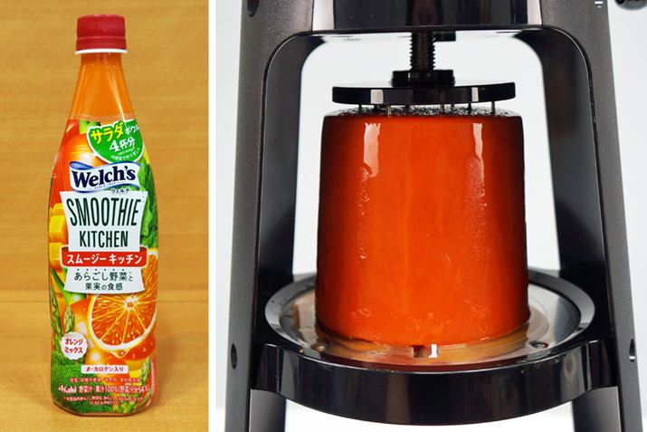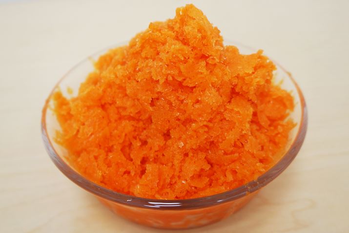 最初にチャレンジしたのは、野菜ジュースを凍らせたもの。スイーツでも健康に配慮したいという思いから、作ってみました。