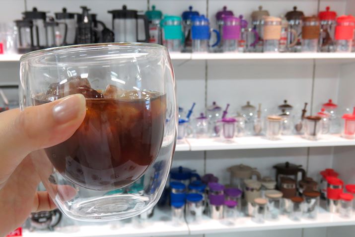なお、この「BEAN アイスコーヒーメーカー」は、もともとは大手航空会社の機内サービス用として発注され、開発された製品なのだそう。どうりで、使いやすさにこだわった作りになっているわけですね。軽く倒す程度ならこぼれたりもしないそうです。