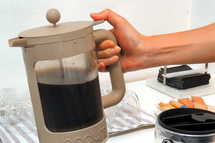 「BEAN アイスコーヒーメーカー」はフレンチプレス式なので、構造はとてもシンプル。電気やペーパーフィルターも不要です。しかも、冷蔵庫で“8時間以上寝かしておくだけ”という手軽さのための工夫が随所に凝らされていて非常に使い勝手がよくなっています。