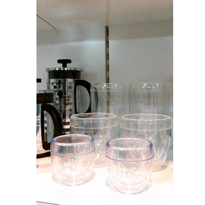 もはやおなじみ。水滴が付かないし保冷・保温性も高くて人気の「ダブルウォールグラス」。2002年発売以来日本でも人気継続中ですね