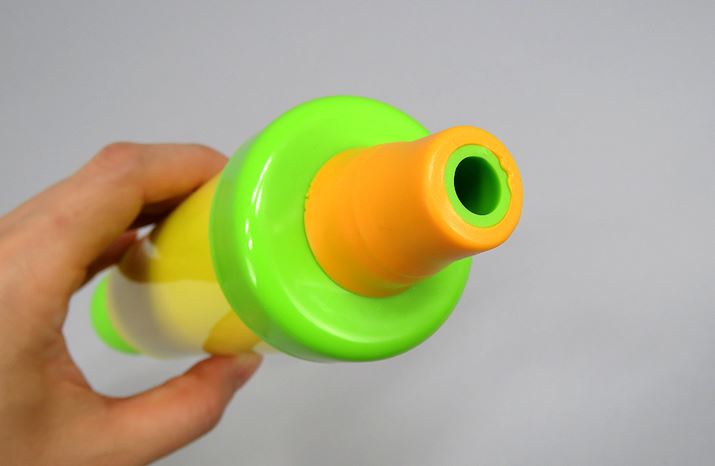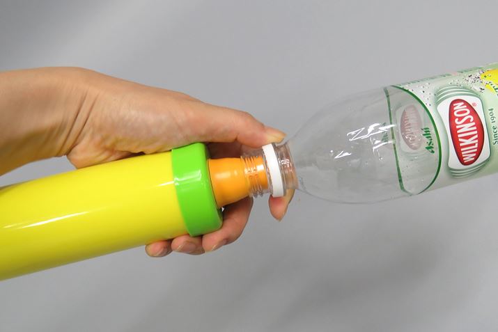 ペットボトルに差す部分はラバー状の素材のため、キュキュッと差し込めば安定し、空気が抜けません。とはいえ、基本的には一般的な清涼飲料のペットボトル用と考えたほうがよいでしょう