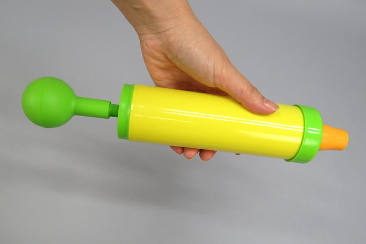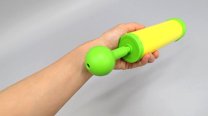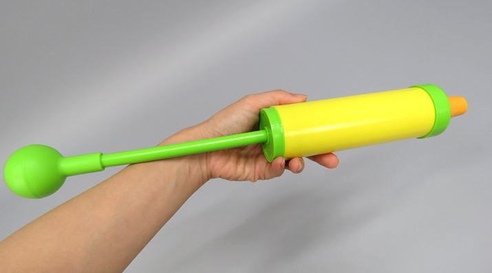 “特許出願済”の「吸いまっせ!」ですが、基本的な構造と使い方はいたってシンプル。本体先端にペットボトルを挿しハンドルレバーを引く。イメージとしては自転車の空気入れのような動作で空気を抜いていくというもの
