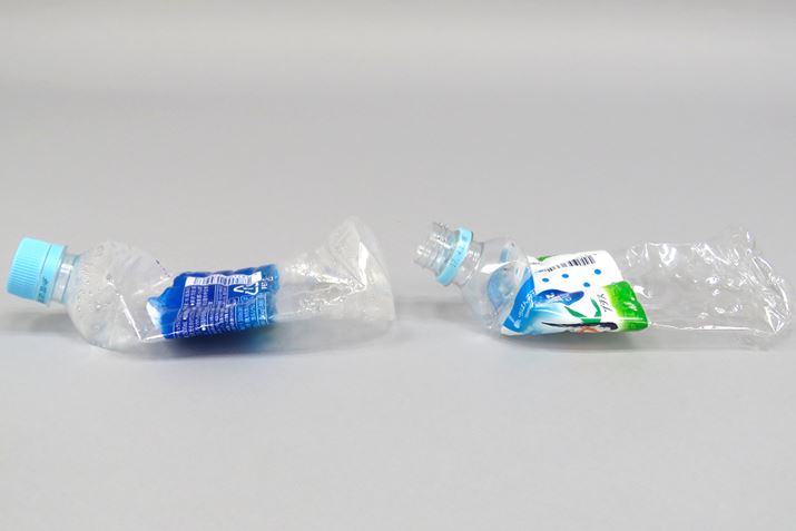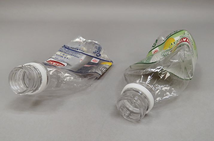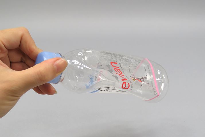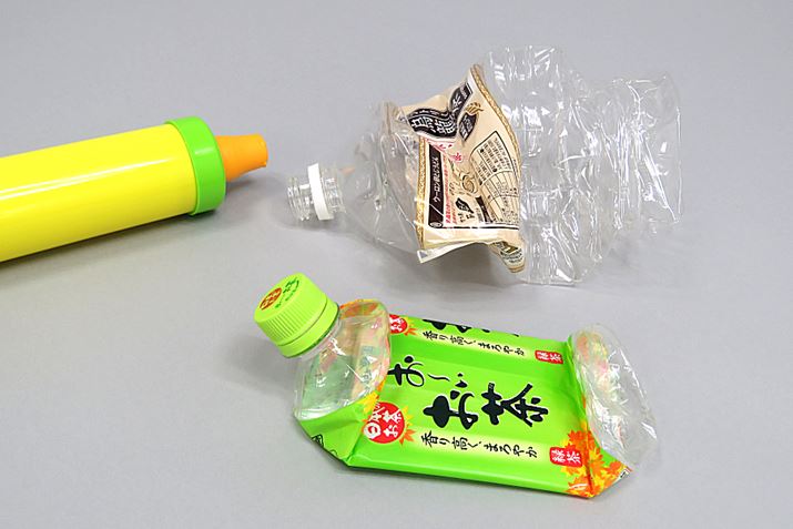 ご覧のように、かなり軽い力でペットボトル容器をつぶすことができました。