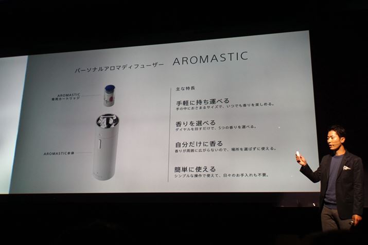 発表会には、同社社長の平井一夫氏もビデオレターで登場。同社はこれまで、映像や音楽、ゲームといったエンターテインメントを通じてライフスタイルにさまざまな提案してきたが、AROMASTICについては香りもエンターテインメントと位置付け、好きなアロマを手軽に持ち出し、香りを選んで、気分を選ぶというライフスタイルを提案していくとアピールしていた。