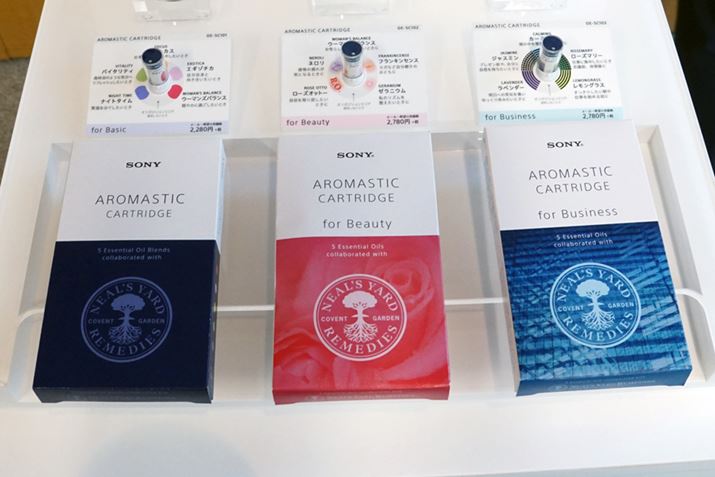 専用カートリッジに使われている香りには、英国の老舗オーガニックコスメブランドであるニールズヤード レメディーズのアロマセラピスト監修による天然植物由来のエッセンシャルオイルが使われている。10月5日の正式発売時点では、ニールズヤードで人気の5つの香りを一つのカートリッジにまとめた「for Basic」、美しい日々を送りたい方に向けてセレクトしたという「for Beauty」、忙しく働く方に向けた5つの香りをまとめた「for Business」をラインアップ。今後は、季節の香りのカートリッジやギフト向けのカートリッジ、アーティストやブランドとのコラボレーションしたカートリッジなども検討しているという。