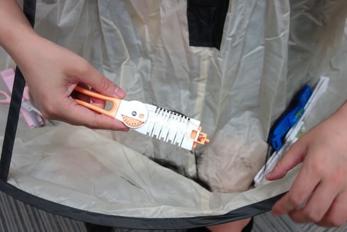 マントにたまった髪をそのままゴミ箱へ