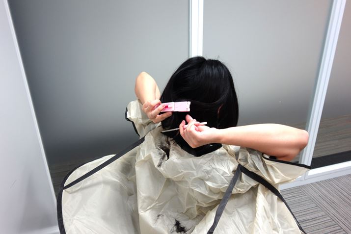 だんだん大胆な気持ちになってきた。よく見えないけど後ろ髪も切ってしまおう。