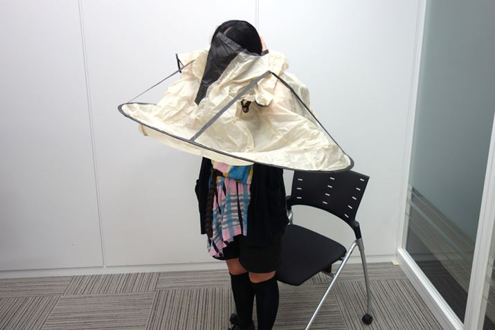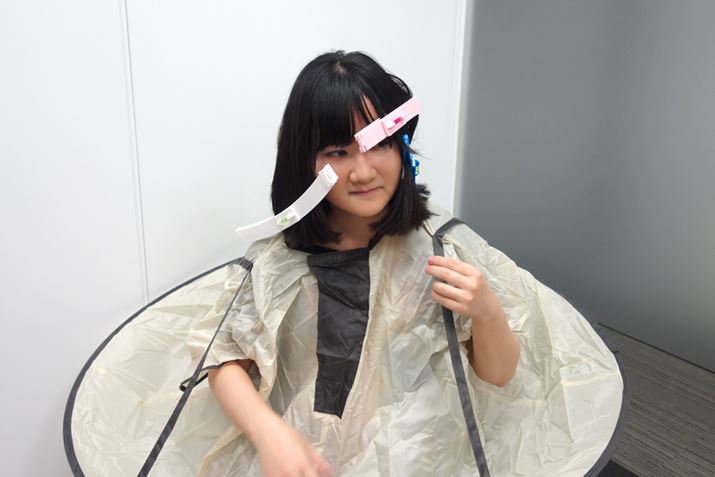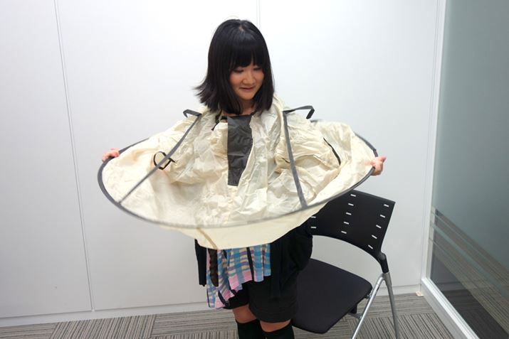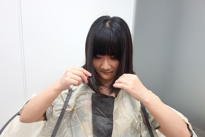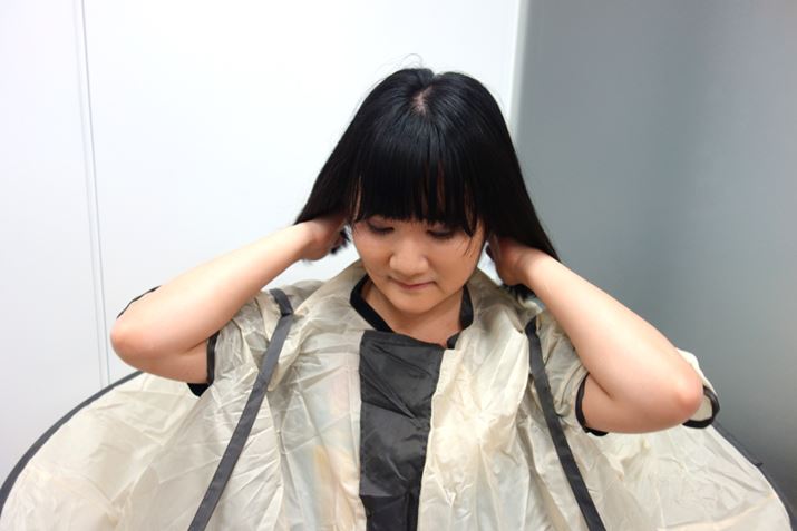 まずはマントをかぶる。そして髪を固定するための道具を装着する。