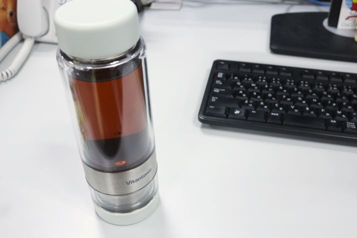 仕事中にコーヒーや紅茶を飲む時、サーバーに作り置きされているコーヒーと違い、紅茶はティーバッグなどで1杯ずつ淹れなければならないので、1杯飲むたびに淹れに立つのが面倒です。また、カップにティーバッグを浸したままだとどんどん濃く渋くなるのも厄介。とはいえ、会社にティーポットを持参するのは大げさな気もするし、洗い物も増えてしまう。そんな感じで、紅茶派はコーヒー派に比べて何かと不便が多いのですが、ビタントニオが、そんな不満を解消してくれそうな「ツイスティー VTW-10」なるタンブラーを発売。便利そうなので、仕事中に使ってみました。