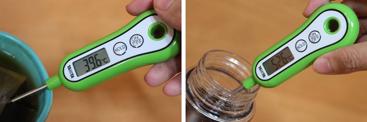 「ツイスティー」と同じくらいの量(約350ml)が入るマグカップに同様の濃さの紅茶を淹れました。1時間後の温度はマグカップが39.6℃、「ツイスティー」が52.6℃