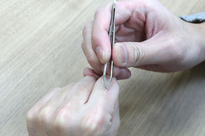 余計な皮膚を傷つけないよう、ささくれの根元ぎりぎりからカットします
