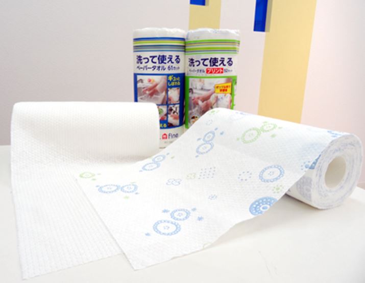 これはなんと、布のような丈夫さと紙の吸水性を兼ね備え、洗って絞って繰り返し使用できるのが特長のペーパータオルです。通常のペーパータオルは水に濡れると強度がなくなり、すぐに破れてしまいますが、これは違います。洗って何度も使えるのです。