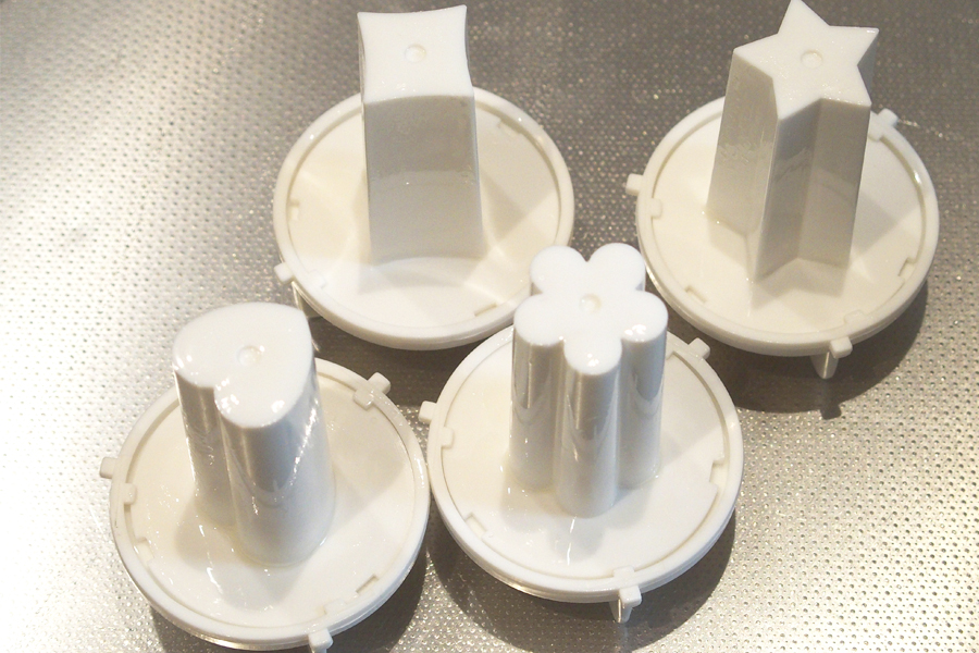 型が付いた蓋を容器に装着します。3つの穴に突起を合わせ、回転させると、しっかりと蓋が締められます