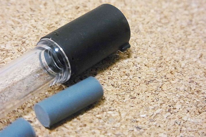 替消しゴムのケースのキャップ部分に小さな突起を発見! 実は円形のケースが転がってどこかにいかないようにするためのストッパー。小さなところまで配慮する、さすがに日本のメーカーですね♪