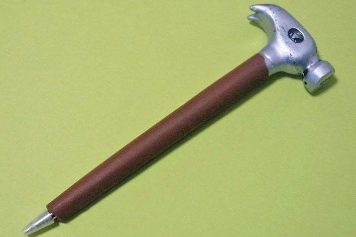 一見カナヅチ(Hammer)のように見えるボールペン。釘を打つことも抜くこともできません