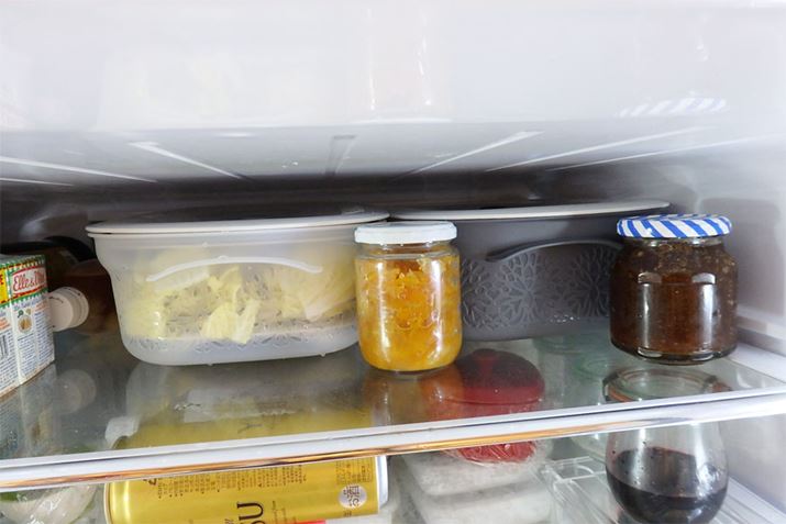 スペースを持て余していた筆者宅の冷蔵庫の最上段にピッタリのサイズ。奥に入れても出し入れしやすく、使用頻度の高いものを手前の空いたスペースに並べておけば出し入れもスムーズ