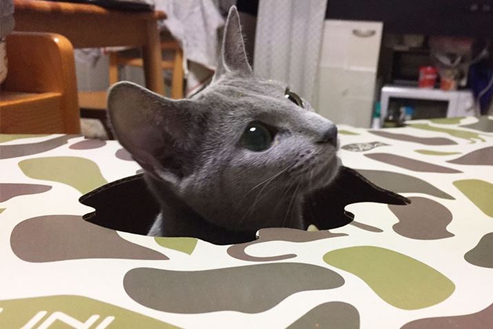 <全体像が気になる方はこちら:お猫様大喜び! 狭い家にも置けちゃう大型キャットウォーク>ここまで4つおもちゃを紹介してきましたが、そういうものを買ったときに「猫が中身よりも段ボールを気に入ってしまった」という経験をお持ちの飼い主さんは多いのではないでしょうか? なら、段ボールでおもちゃを作ってしまおうというのがこの「猫の秘密基地」です。その名のとおり、猫がのぞいたり、潜ったり、顔を出したりして遊べる秘密基地になっていて、夢中で遊んでいる姿を楽しく見守ることができます。