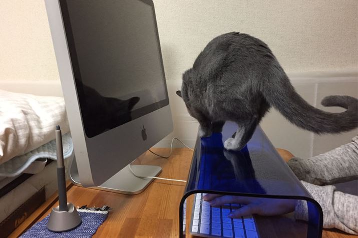 <元記事では、このあと意外な結末に…:DJ NEKOO誕生? 猫がDJになるターンテーブル型爪とぎ>猫ってなぜか、キーボードが大好きですよね。何度どかしてもキーボードに寄ってきて作業を妨害してくる…キーボードを踏まれた結果、謎の文章をSNSに投稿してしまった経験のある人も多いのではないかと思います。そんな人間と猫のあくなき戦いに終止符を打つのがこの「ねこぽちキーボードカバー」です!(「ねこぽち」とは、猫がキーボードを踏んで勝手にポチポチ謎の文章を打ち込んでしまう現象のことだそう)。要はキーボードを覆えるカバーなのですが、これが効果てきめん! しかしショボンとしている猫ちゃんを見ると、なんだか罪悪感がわいてきたのでした…。