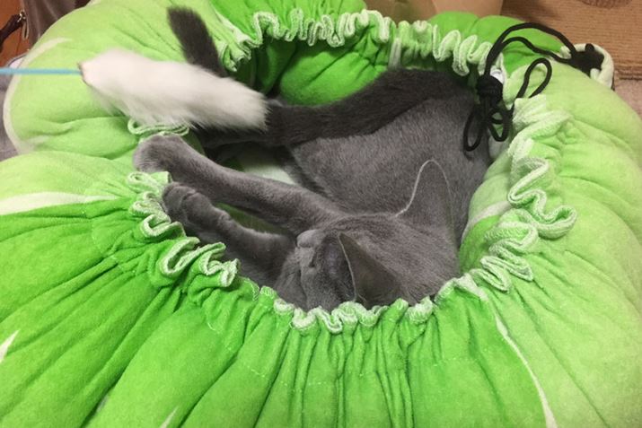 竹の中からかぐや姫…ならぬ、キャベツの中からお猫様。スッポリおさまった姿がなんともかわいいこのベッドは、ユニハビタットが販売している「ベジタブルベッド」です。フォトジェニックな見た目はもちろんのこと、巾着のようにきゅっとしぼめたり、びろーんと広げてマットにすることもできたりと自由自在。猫のサイズに合わせられるので、どんな子でも気に入ってくれること間違いなし! キャベツのほかに、かぼちゃとみかんがあります。残念ながら、2018年2月15日時点では売り切れになっているようで、また復活し次第リンクを貼らせていただきます!