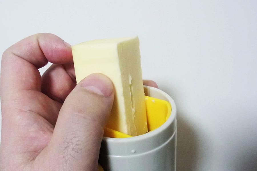 まずは、バターをカットして容器にセットするところから。少し面倒に感じるかもしれませんが、一度セットすれば長持ちするので、毎回カットすることを考えれば格段にラクですよ♪