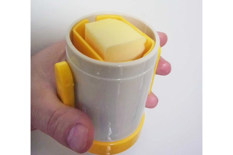 まだ小学生の低学年の頃、筆者は、バターとマーガリンは硬さが違うだけで、どちらも似たようなものだと思っていました。しかし、歳を重ねていくにしたがってわかってきたのは、硬さだけではなくその味の違い。焼きたてのトーストに塗って食べたときの味わいが大きく異なることが判明。断然バターのほうがおいしいとわかりました。さらに、自分で購入するようになってからはお値段も違うということも…。そんなおいしいバターですが、難点は冷蔵庫から取り出してすぐは硬くて、トーストなどに塗りづらいこと。そんなこともあってか、このいいモノ調査隊でも多くの方がバター関連商品を紹介しています。そこで、筆者も負けまいとバター関連商品探しに挑戦。こんなものを見つけてきました。冷蔵庫から出したばかりの硬くて使いにくいバターを楽に使えてしまうというアイテムです。