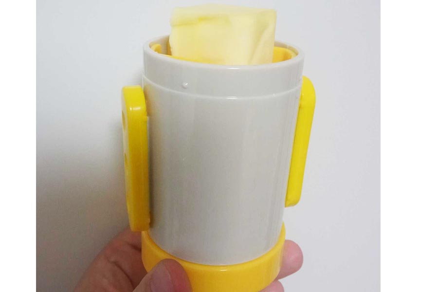 使うときは底にあるつまみ(黄色の部分)を回すとセットされたバターが出てきます