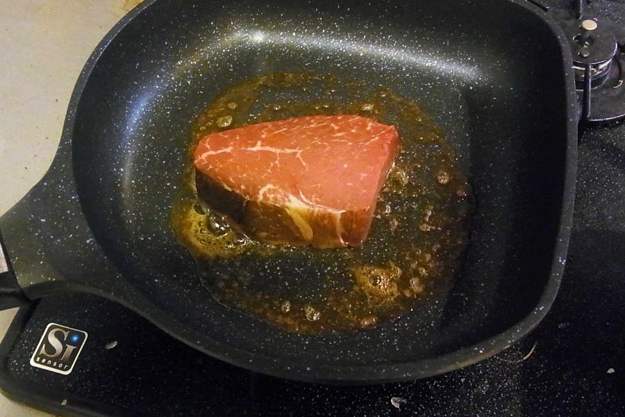 今夜は奮発してステーキ。おいしそうな香りが漂います